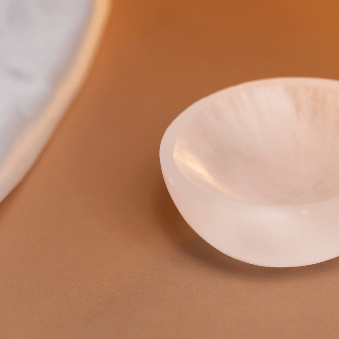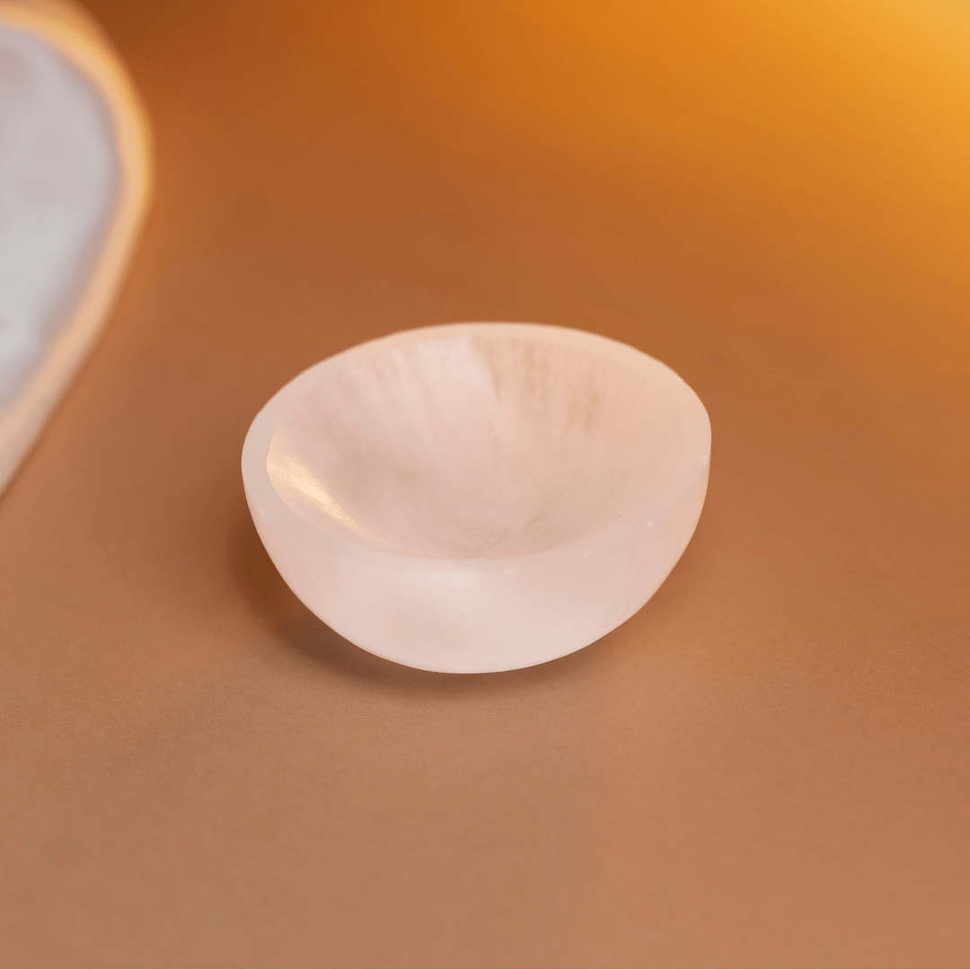 | Do use a dry microfiber cloth to dust the bowl. | Don't expose to water; Selenite is a soft gypsum and may dissolve or lose its luster. |