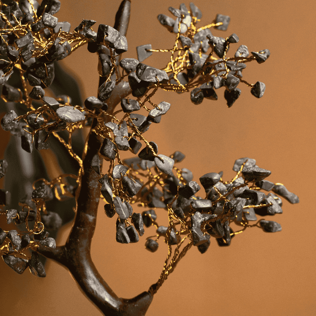 Invite the energy of a "Money Magnet" into your professional and personal life with our Natural Pyrite Stone Tree. Handcrafted by skilled artisans, this exquisite tree features 300 genuine Pyrite stone chips meticulously arranged to mimic the flourishing branches of a tree. Pyrite, often referred to as "Fool's Gold," is celebrated for its ability to mirror the frequency of gold and wealth.