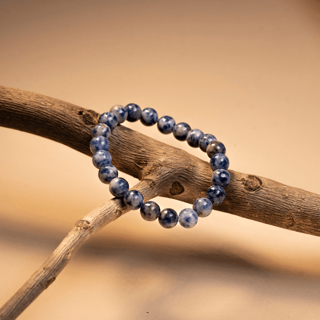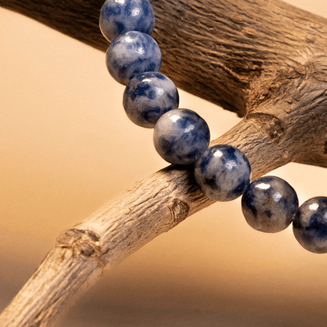 Elevate your spiritual and intellectual frequency with our Stylish Sodalite Stone Bracelet. Handcrafted from genuine Sodalite gemstones, each round bead showcases a mesmerizing deep blue hue beautifully interspersed with white calcite veins, creating a unique pattern for every wearer. This mineral is celebrated as a "Stone of Truth," designed to harmonize the subconscious and conscious mind.