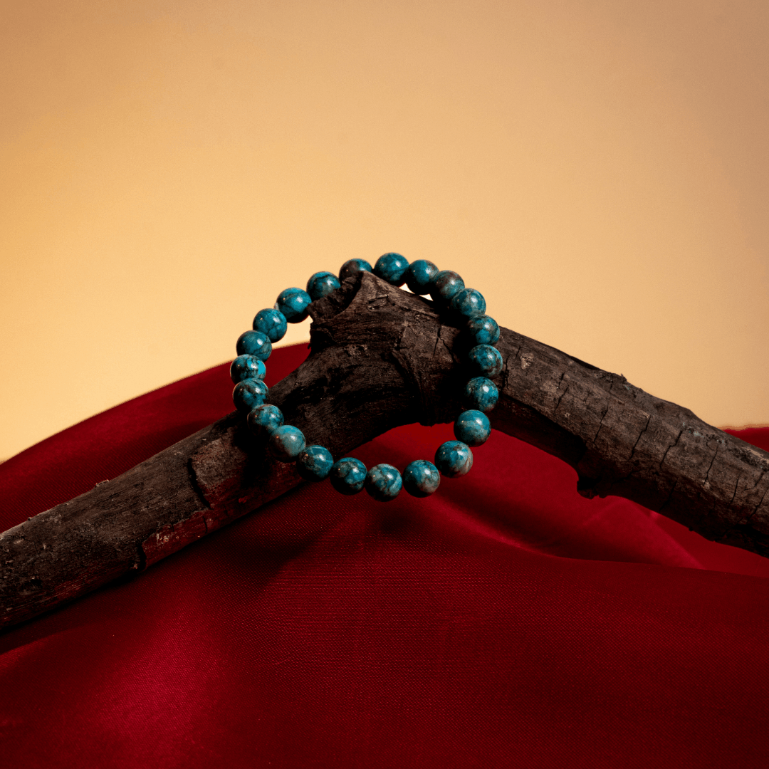Step into a state of serene confidence with our Natural Chrysocolla Crystal Bracelet. Meticulously handcrafted using 100% authentic, round 8mm beads, this bracelet showcases the breathtaking, earth-like patterns unique to Chrysocolla. As a natural stone, it features characteristic surface marks and internal veining, serving as a testament to its raw, organic origin.